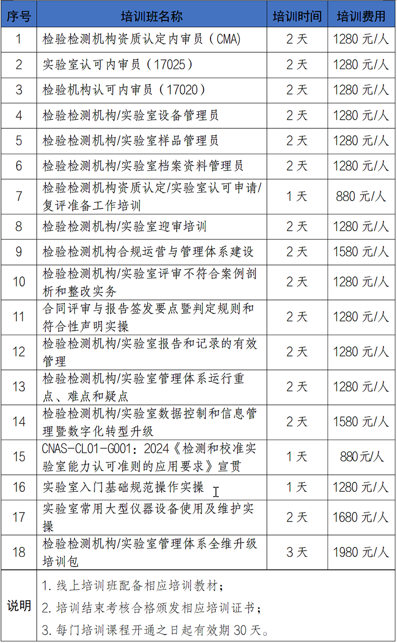 (五)检验检测机构/实验室监督员培训班
